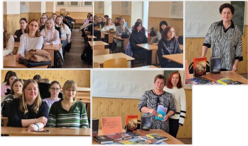 Директор Фундаментальной библиотеки З. Н. Тимченко продолжила тему, представив галерею имен выдающихся выпускников. Среди них — Почетный профессор ВГПУ В. В. Будаков, фронтовик и редактор газеты «Коммуна» В. Я. Евтушенко, В. Н. Костенко, чьи произведения запечатлели военное и послевоенное время, а также члены Союза писателей России П. Д. Чалый, Ю. М. Кургузов и молодой автор М. А. Калашников. Книжная выставка, подготовленная библиотекой, наглядно проиллюстрировала их богатое творческое наследие.